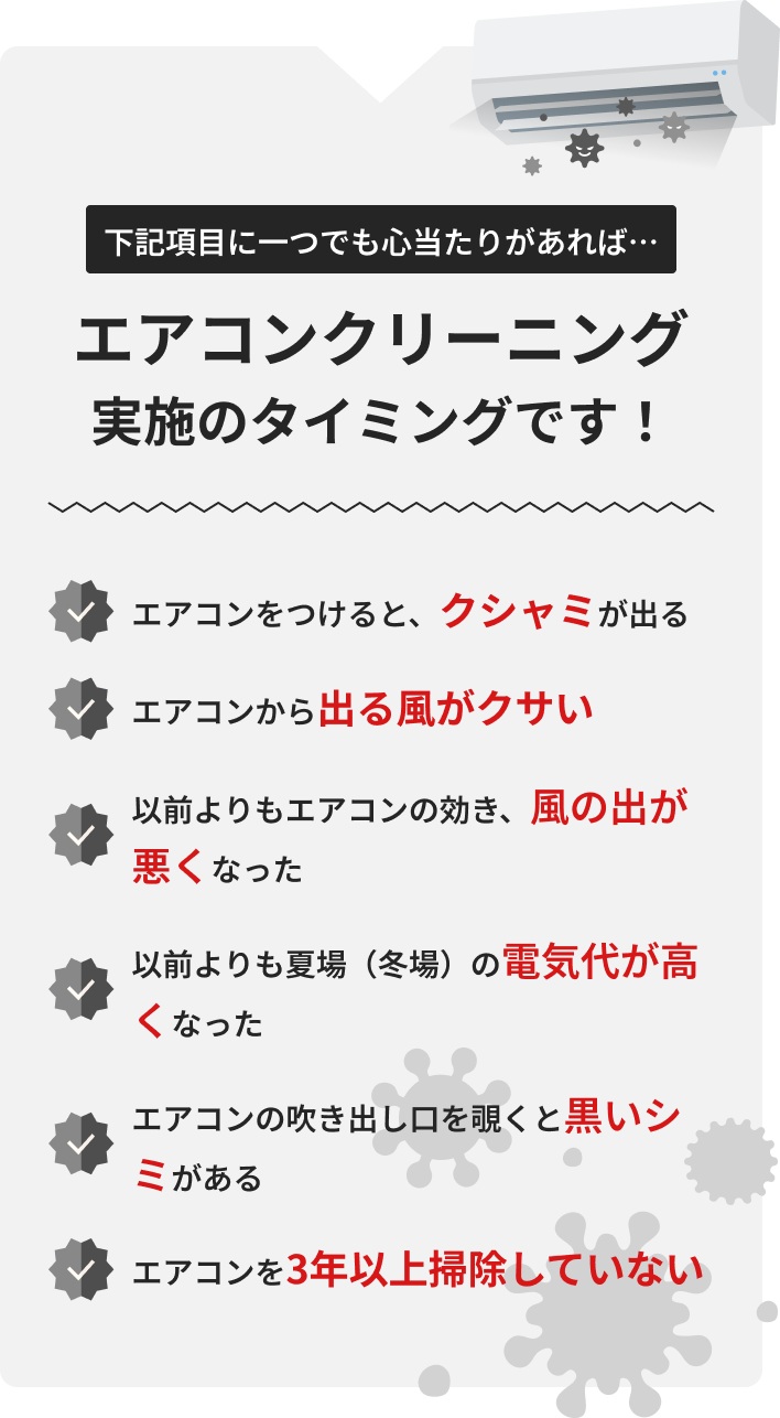 エアコンには汚れや菌が勢ぞろい!
