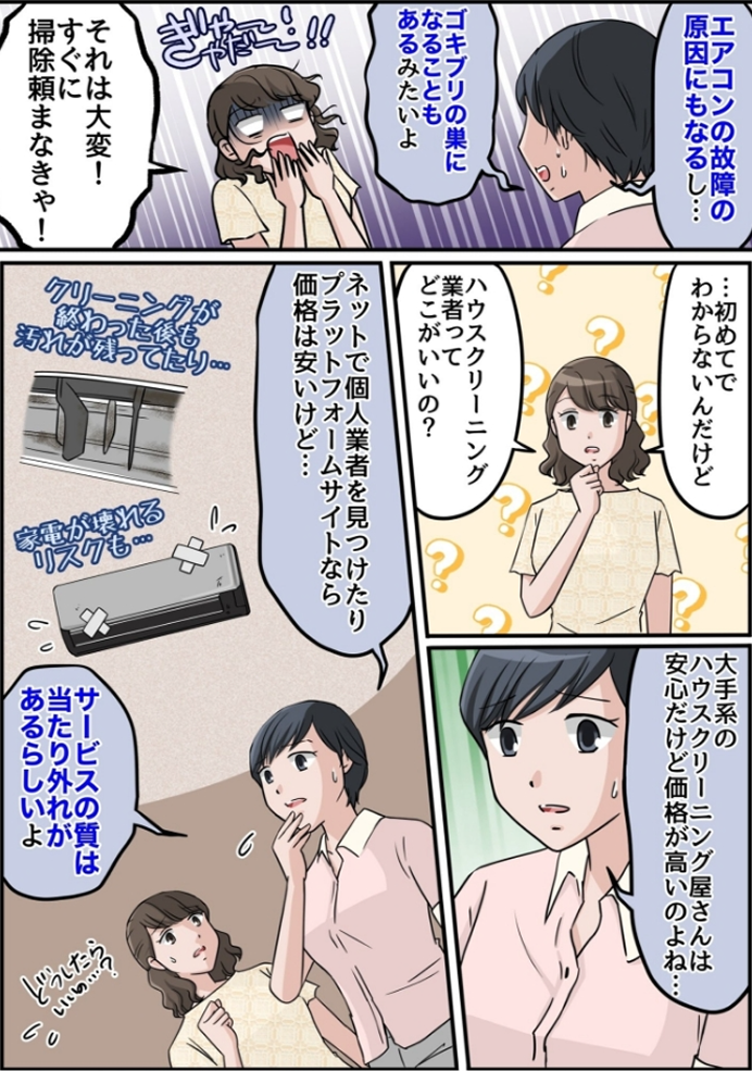 ハウスクリーニングは、作業担当の技術力によって対応できる案件の幅や、養生・分解・施工のクオリティにバラつきがあるのが現実です。たとえ有名なハウスクリーニング店でも、研修上がりの新人作業員にあたることも…