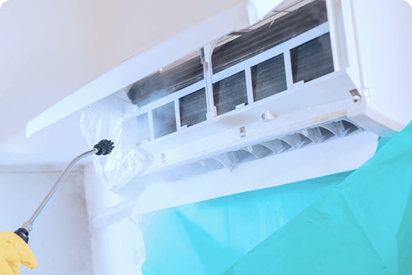 専用の洗浄機材と洗剤を使用し、エアコン内部のカビやホコリ、汚れを徹底的に除去します。取り外したパーツも一つひとつ丁寧に洗浄いたします。